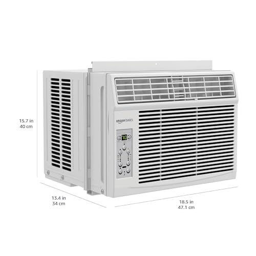 Amazon Basics 6000-BTU Window Air Conditioner, Up to 250 Sqf, Window AC Units with Cool and Fan Functions, Washable Filter, Adjustable Window Kit, Digital Temperature Display, Remote Control, White